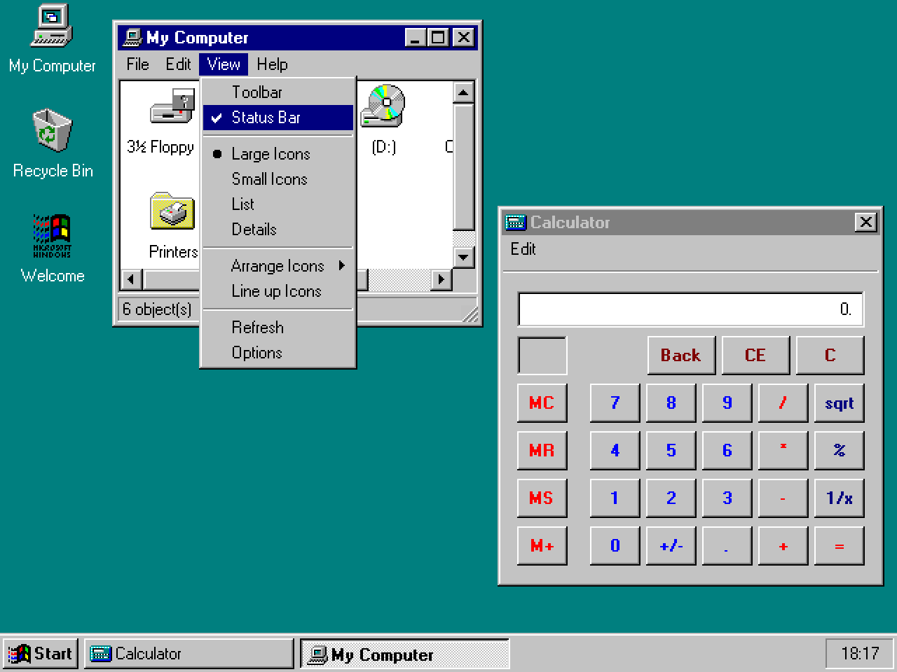 Winlose 95 is an authentically counterfeit Windows 95 experience. It's a demo application for a GUI library I'm developing but it's fun even as a standalone thing.